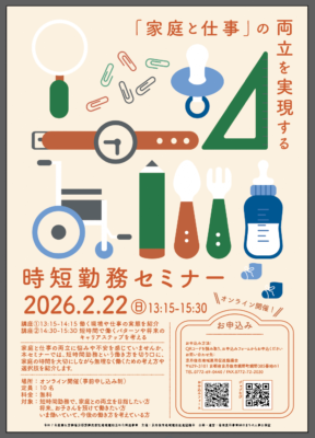 短時間勤務という働き方を切り口に、家庭の時間を大切にしながら、無理なく働くための考え方や選択肢を紹介する、オンラインセミナーを開催します。